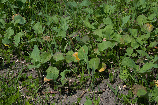 Nach der Ernte erfolgt die Stoppelbearbeitung erst nach dem Auflaufen des Ausfallraps. Dieser Arbeitsgang hat so flach wie möglich zu erfolgen, damit die nicht aufgelaufenen Ausfallkörner nicht vergraben werden. Diese würden bei einer späteren Bodenbearbeitung keimen.